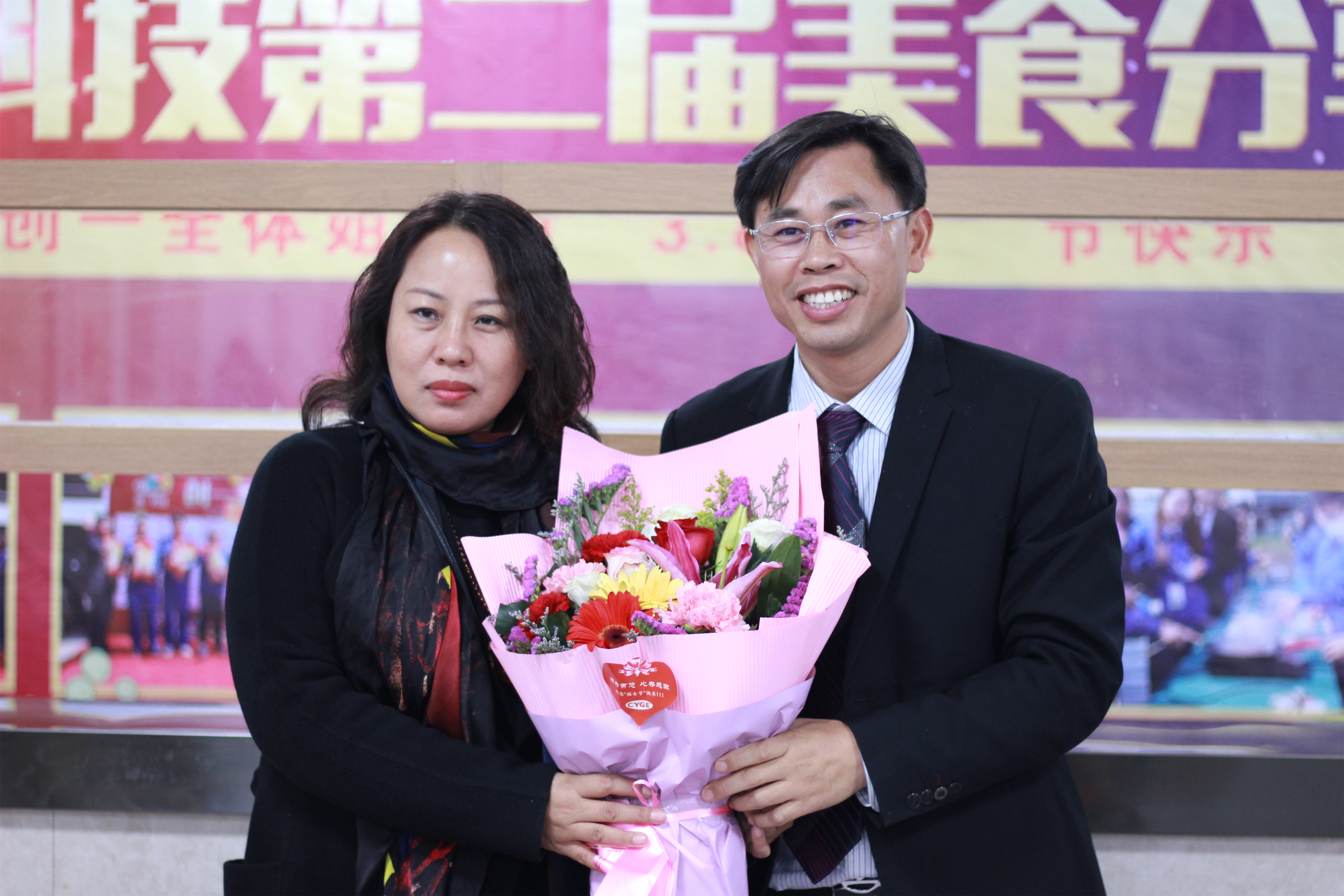 苏总为中国电子珠海南方软件园张总献上鲜花和巧克力